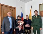 В поселке Кетченеры родителям погибшего участникам СВО Петра Басангова передали орден Мужества.