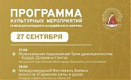 Сегодня, 27 сентября, участников и гостей ждёт насыщенный третий день: музыкальное подношение трём драгоценностям, фестиваль боевых искусств и премьера спектакля.