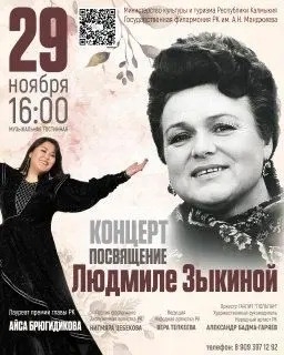 Концертную программу представит Народная артистка Республики Калмыкия - Вера Тепкеева. Концерт состоится 20 ноября в Калмыцкой госфилармонии им. А. Манджиева.