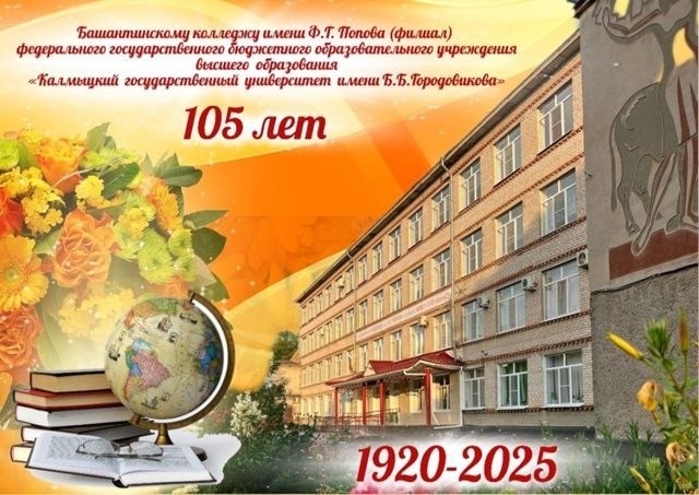 Башантинский колледж (филиал) Калмыцкого государственного университета имени Б.Б. Городовикова приглашаем вас на празднование 105-летия.