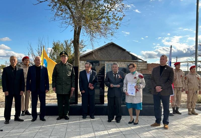Сегодня в поселке Джангар Октябрьского района на здании школы торжественно открыли мемориальную доску памяти Бочарниковой Марии Ивановны.