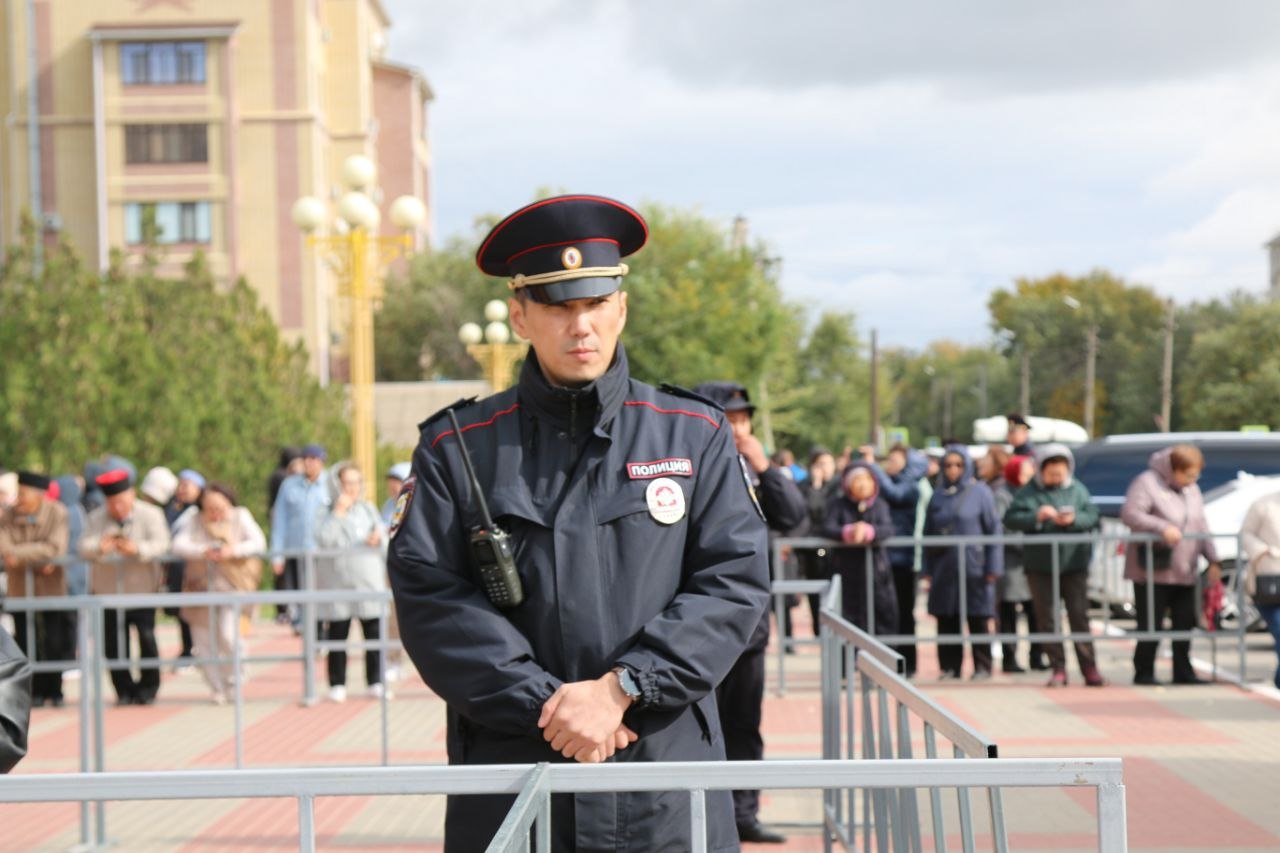 В целях обеспечения безопасности граждан и охраны общественного порядка полицейские несли службу в составе цепочки на улицах Элисты и на территории Центрального хурула Республики Калмыкия.