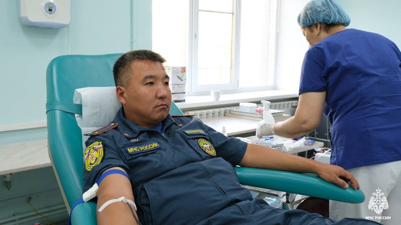 В честь 35-летия МЧС России в Республике Калмыкия сотрудники чрезвычайного ведомства приняли участие в сдаче крови.