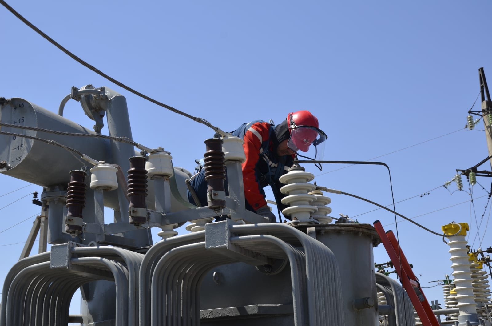 Энергетики произвели ремонт радиаторов охлаждения для надежной работы в период летних экcтремальных температур, очистку изоляторов вводов и баков преобразователя, проверили маслоуказатели и произвели доливку трансформаторного масла до оптимального уровня.