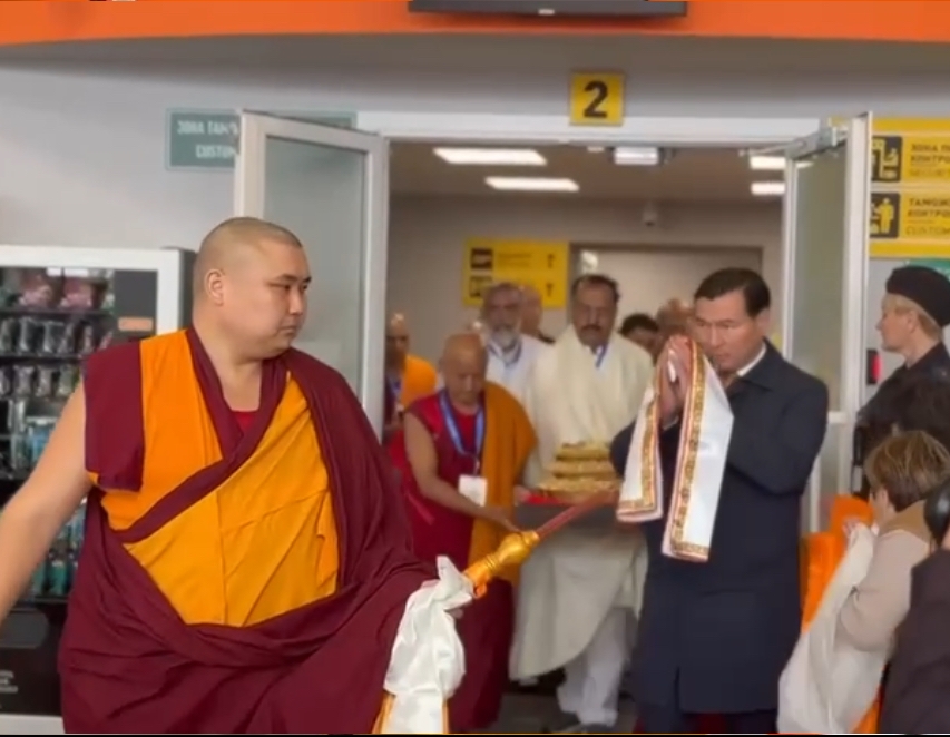 Специальный авиарейс из Индии приземлился в элистинском аэропорту. Впервые в истории в Россию прибыли буддийские святыни.