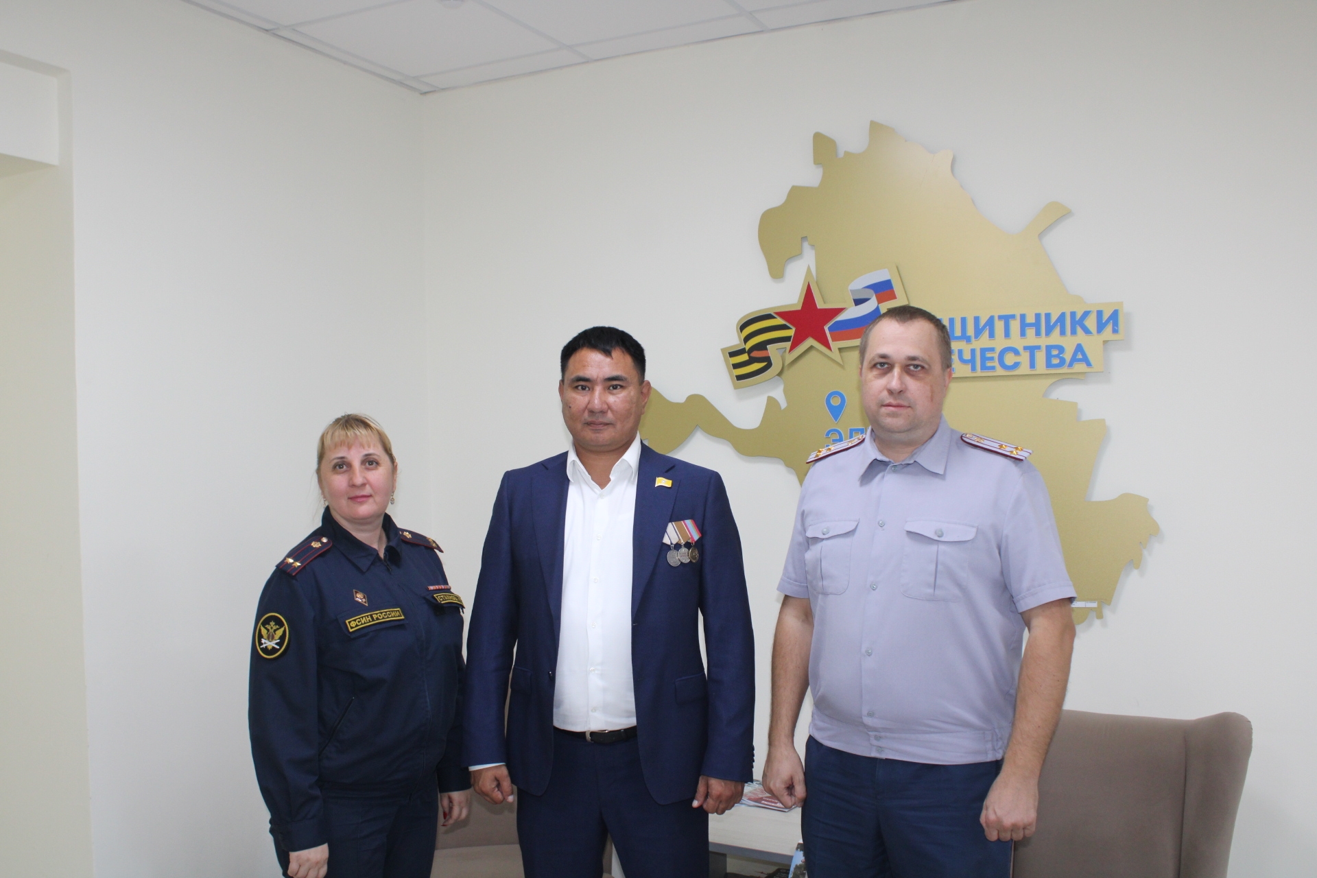 В региональном филиале фонда «Защитники Отечества» заместитель начальника УФСИН России по Республике Калмыкия Глеб Залящев, начальник отдела кадров, воспитательной и социальной работы с личным составом регионального Управления Ксения Стахнова и руководитель филиала Очир Халгаев обсудили вопрос занятости ветеранов специальной военной операции.